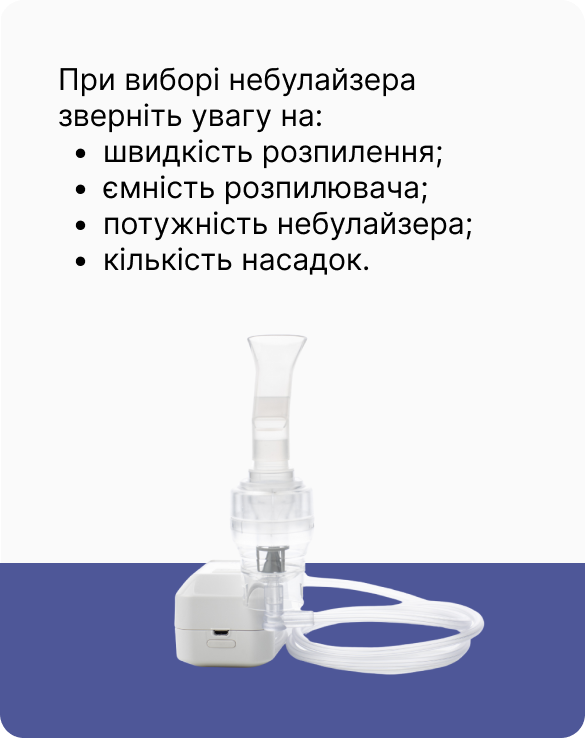 Небулайзер є різновидом інгалятора, який використовують у разі захворювання нижніх та верхніх дихальних шляхів. У комплект MED-120 входять не тільки мундштук та маски для дітей та дорослих, але й насадка для носа, яка дозволяє використовувати небулайзер при нежиті.