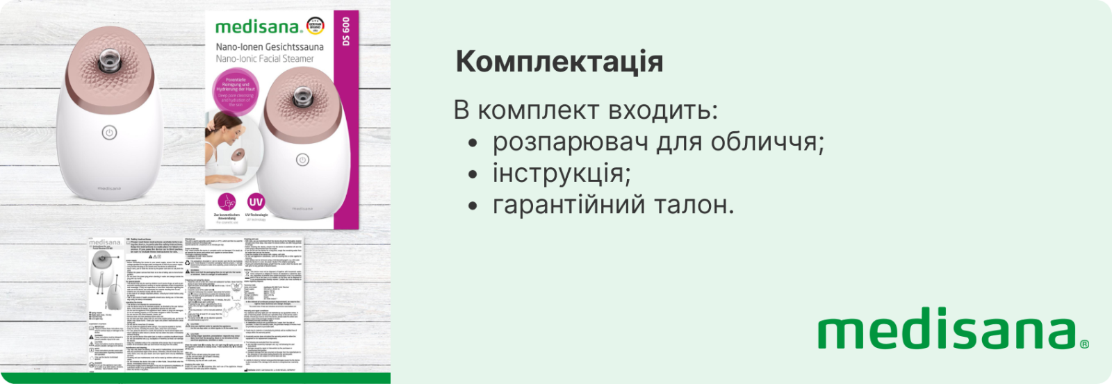 Medisana є однією з провідних компаній на ринку медичної техніки для дому. Вже близько 40 років компанія дбає про здоров’я людей, постійно працюючи над подальшою розробкою та виробництвом товарів для здоров’я, щоб ці продукти могли допомагати все більшій кількості людей самостійно контролювати стан свого здоров’я та активно сприяти покращеню власного самопочуття.