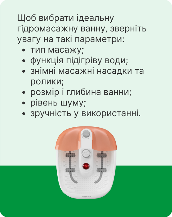 Гідромасажна ванна для стоп розслаблює та знімає втому після важкого дня. Користуватися ваннами можна щодня, при цьому тривалість процедури повинна складати 10-15 хвилин. Рекомендується проводити процедури перед сном. Це дозволить покращити якість сну, допоможе розслабитися та забезпечить ряд бадьорості на майбутній день.