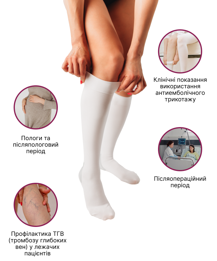 - клінічні показання використання компресійного медичного антиемболічного трикотажу;