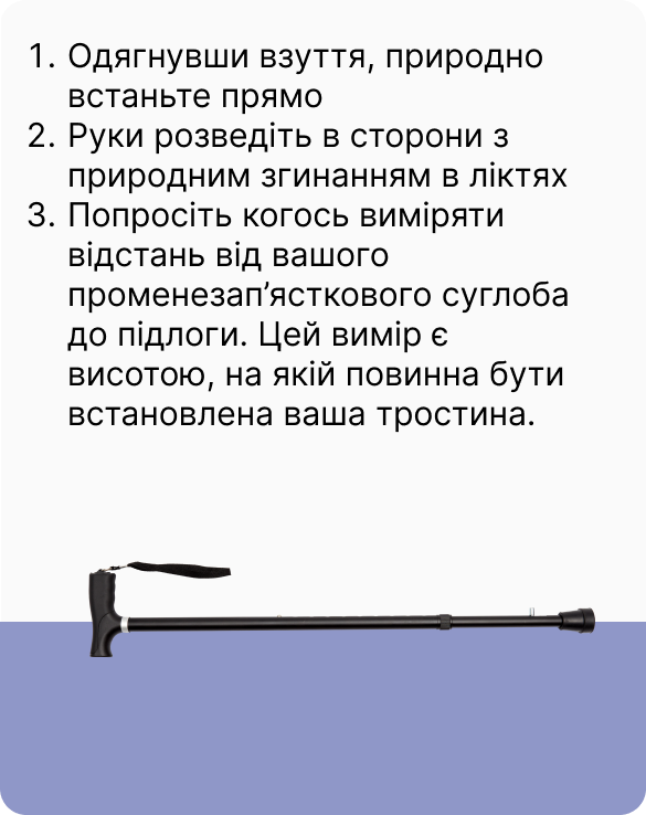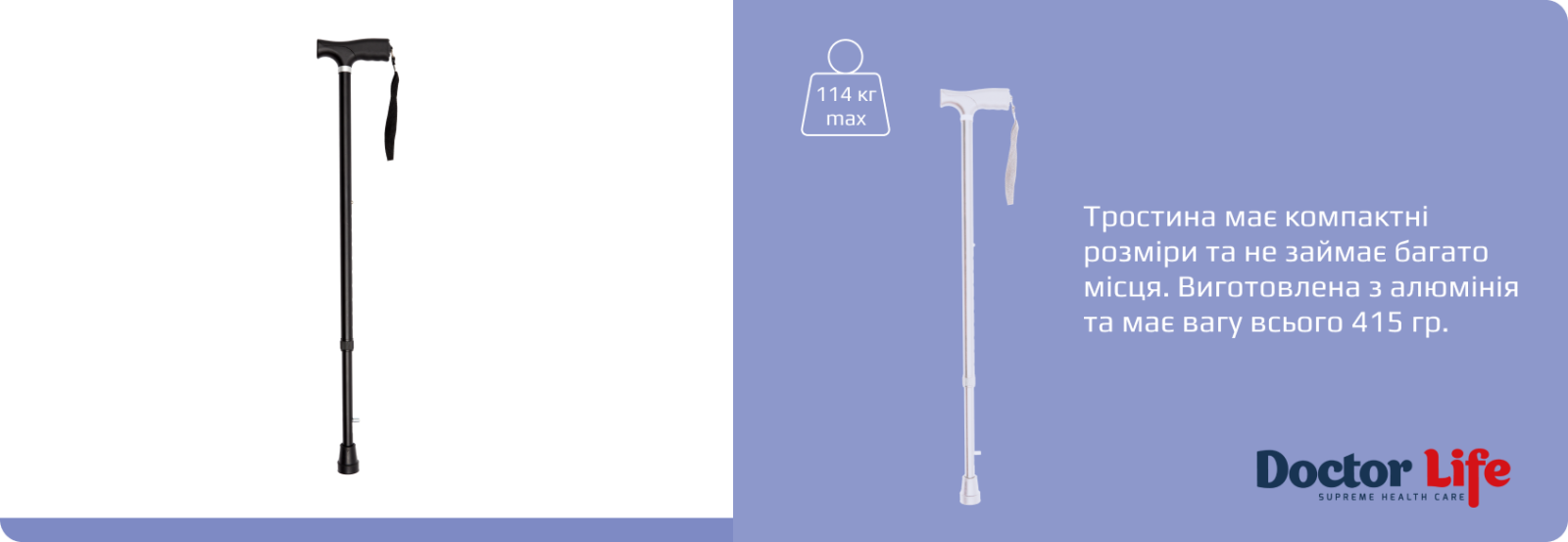 Використання цієї тростини під час ходьби покращує рівновагу. Висувний наконечник робить пересування по слизькій поверхні більш безпечним.