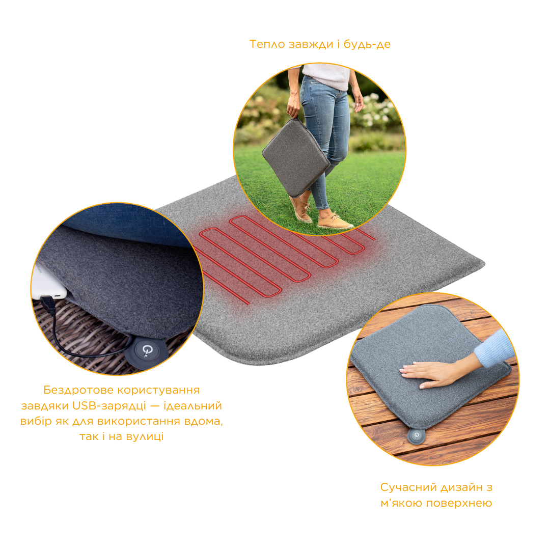 Подушка забезпечує комфортний рівень тепла для кожного. Використовуйте її для дома, вулиці, автомобіля та інших міст. Завдяки своїй універсальності та портативності подушку зручно брати з собою в похід чи у подорож.