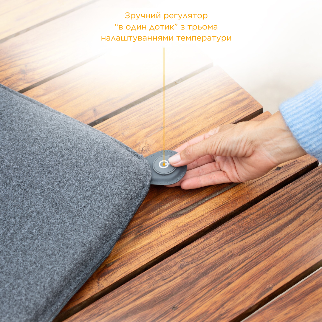 Подушка з підігрівом OL 600 – це ідеальне рішення для використання як у приміщенні, так і на відкритому повітрі. Завдяки великій площі поверхні (40 x 40 см) і бездротовому використанню за рахунок вбудованого USB-порту для підключення powerbank, подушка забезпечує тепло в будь-якому місці та за будь-яких умов. Вона має сучасний дизайн із м’якою фетровою поверхнею та виготовлена з міцного і зносостійкого матеріалу.