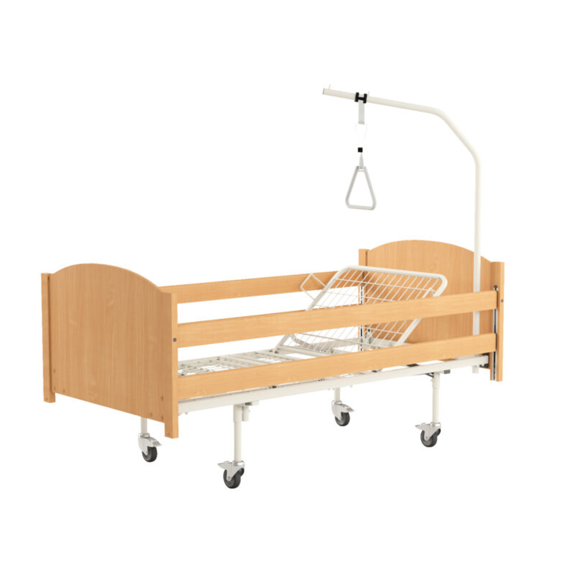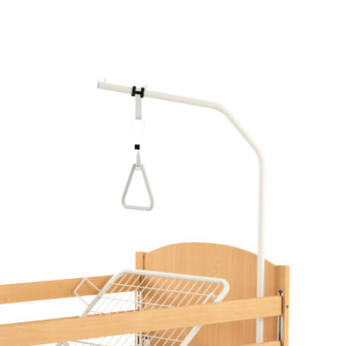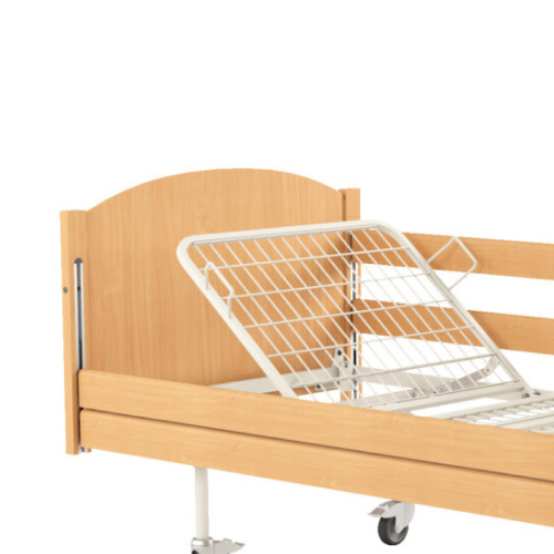 Ліжко оснащене двокомпонентними регульованими поручнями, які можна налаштувати відповідно до потреб користувача, забезпечуючи додаткову безпеку та підтримку під час пересадки у ліжко та з нього.