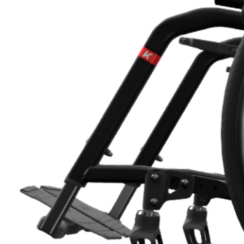 Крісло колісне оснащене полегшеною карбоновою опорою стоп з можливістю її регулювання за кутом нахилу.
