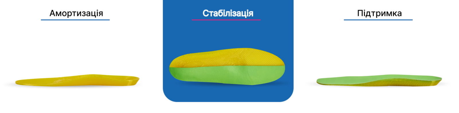 - ● Індивідуально підібрана жорсткість — щільність устілок визначається відповідно до потреб кожного клієнта.