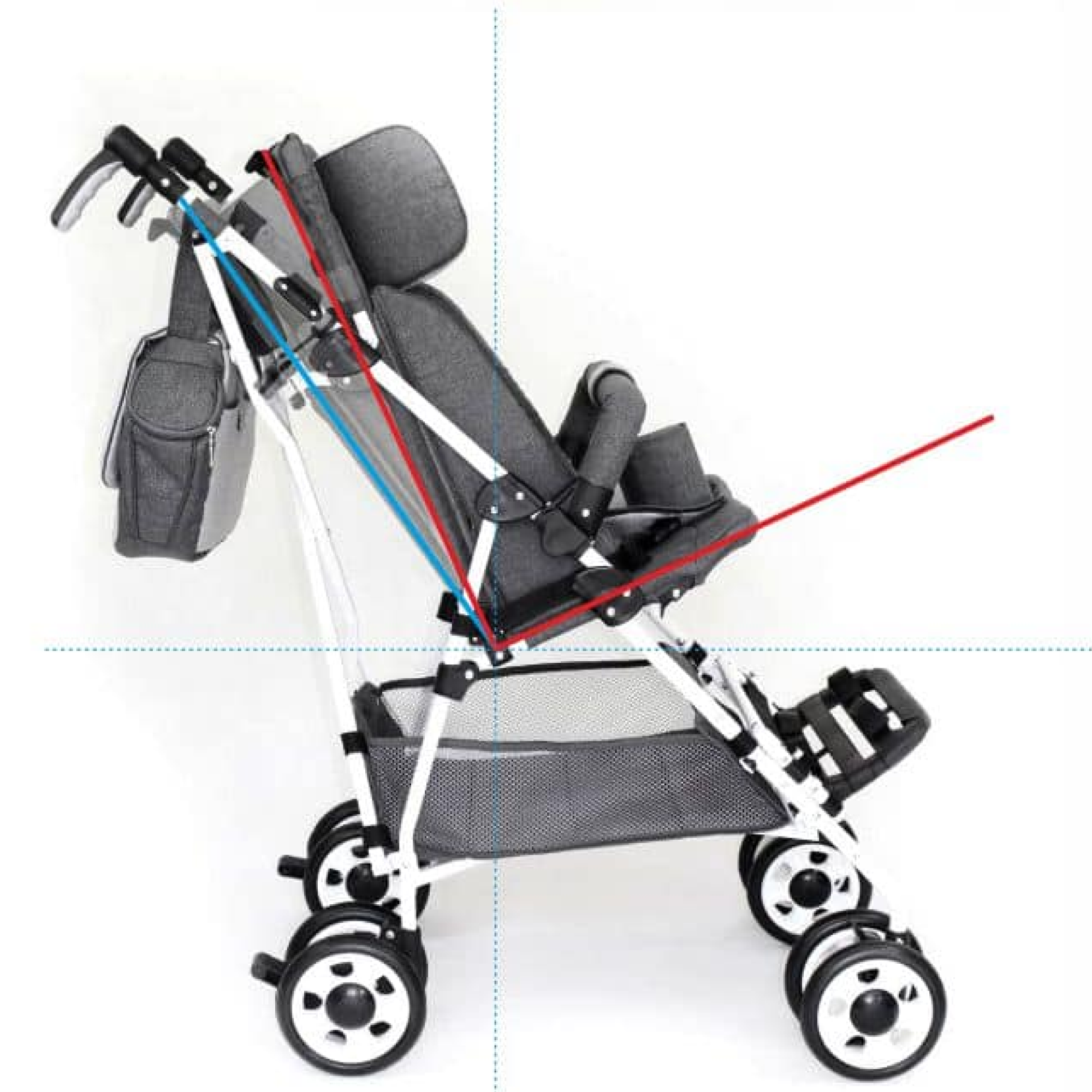 Сидіння крісла колісного знаходиться в положенні 25° по відношенню до горизонтальної площини. Спинка має два положення: 22° і 34° по відношенню до сидіння.