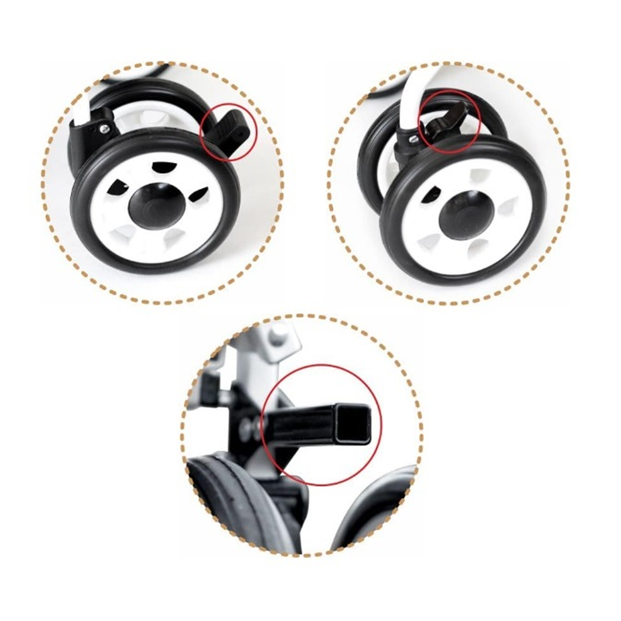 Крісло колісне оснащене амортизаторами на всіх чотирьох колесах, що поглинають більшість ударних навантажень. Передні колеса мають функцію блокування поворотів. Кожне заднє колесо має незалежне гальмо.