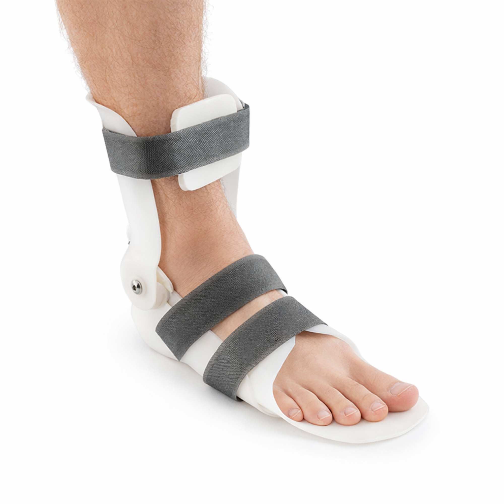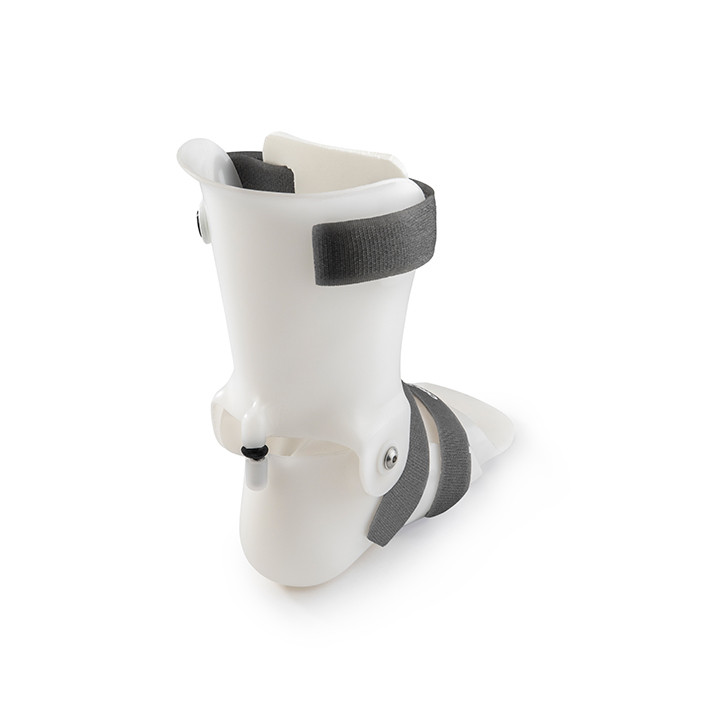 Динамічний ортез на гомілковостопний суглоб - не блокує крок, а супроводжує його, стаючи надійною зовнішньою опорою. Шарніри дозволяють вільно здійснювати тильне та підошовне згинання. Це забезпечує природний перекат стопи під час ходьби, зберігаючи тонус м'язів гомілки. Жорсткий каркас із високоміцного термопластику надійно охоплює гомілку та п'яту, повністю блокуючи небезпечні бічні рухи та підвертання стопи.