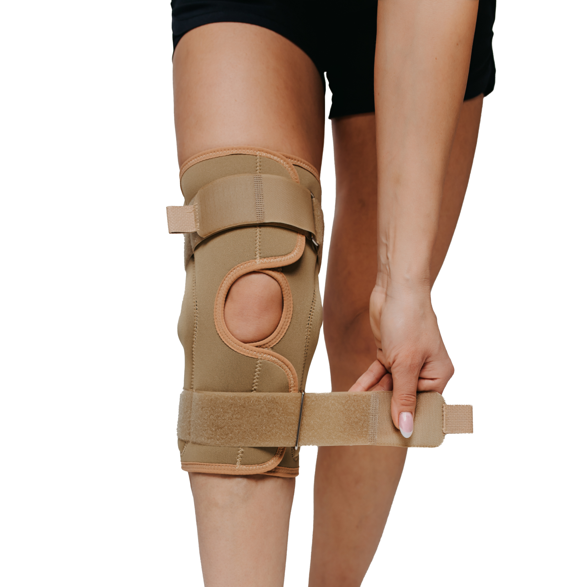 За рахунок алюмінієвих вставок з полішарнірами брейс колінного суглоба виконує бічну стабілізацію, забезпечуючи згинання/розгинання, перешкоджає патологічним рухам суглоба. Виготовлений з неопрену, забезпечуючи термоефект. Додаткові ремені призначені для надійної фіксації брейсу на нозі. Конструкція повністю розкривається, має відкриту частину під коліном, що значно полегшує її використання, при наявності пов'язки, у післяопераційний період, людям похилого віку.