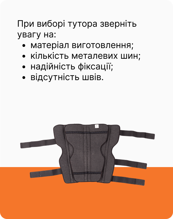 Спеціальні силіконові стрічки попереджають ковзання, забезпечують правильне положення тутора під час носіння.