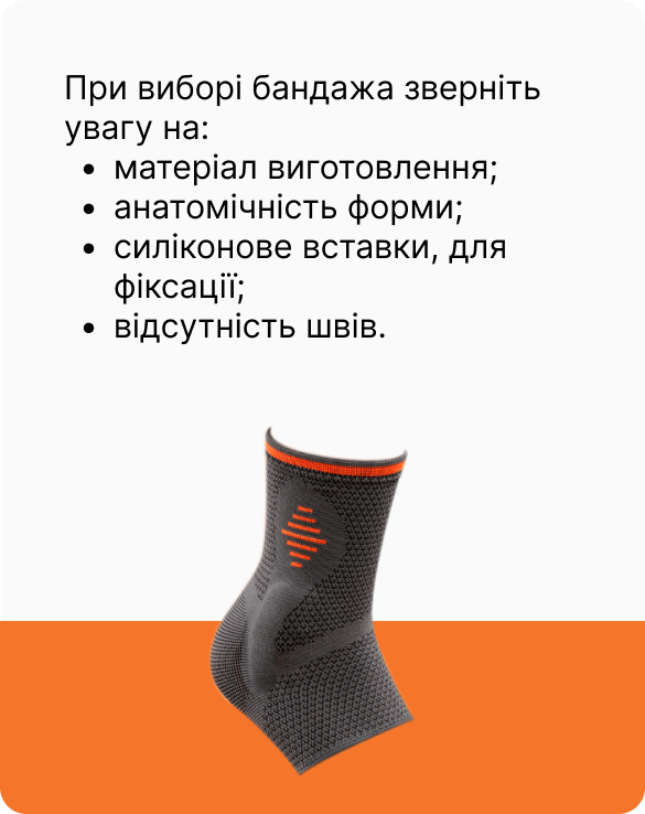 Бандаж виготовлений з трикотажного еластичного матеріалу, який має відмінні повітропроникні властивості. Матеріал дуже міцний та м'який, гарантує підвищений комфорт, щільно прилягає до кісточки, повторюючи її форму. Безшовна технологія дозволяє уникнути подразненя шкіри та натирання. Бездоганний матеріал характеризується підвищеною зносостійкістю при щоденних фізичних навантаженнях, легко прати, не втрачає своїх властивостей після тривалої експлуатації.