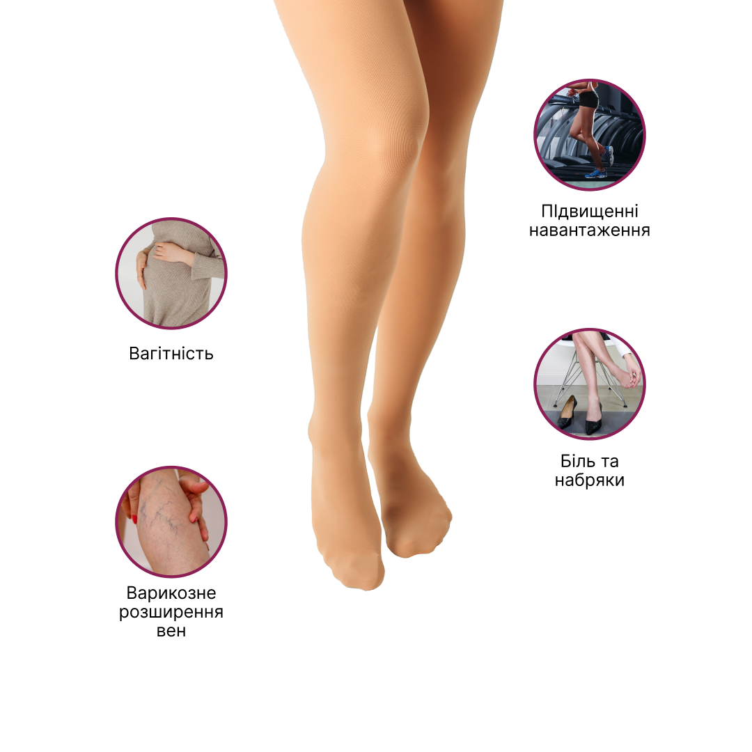 Wearing compression class 3 medical stockings Microtrans compression relieves pain, relieves swelling, prevents progression of illness.