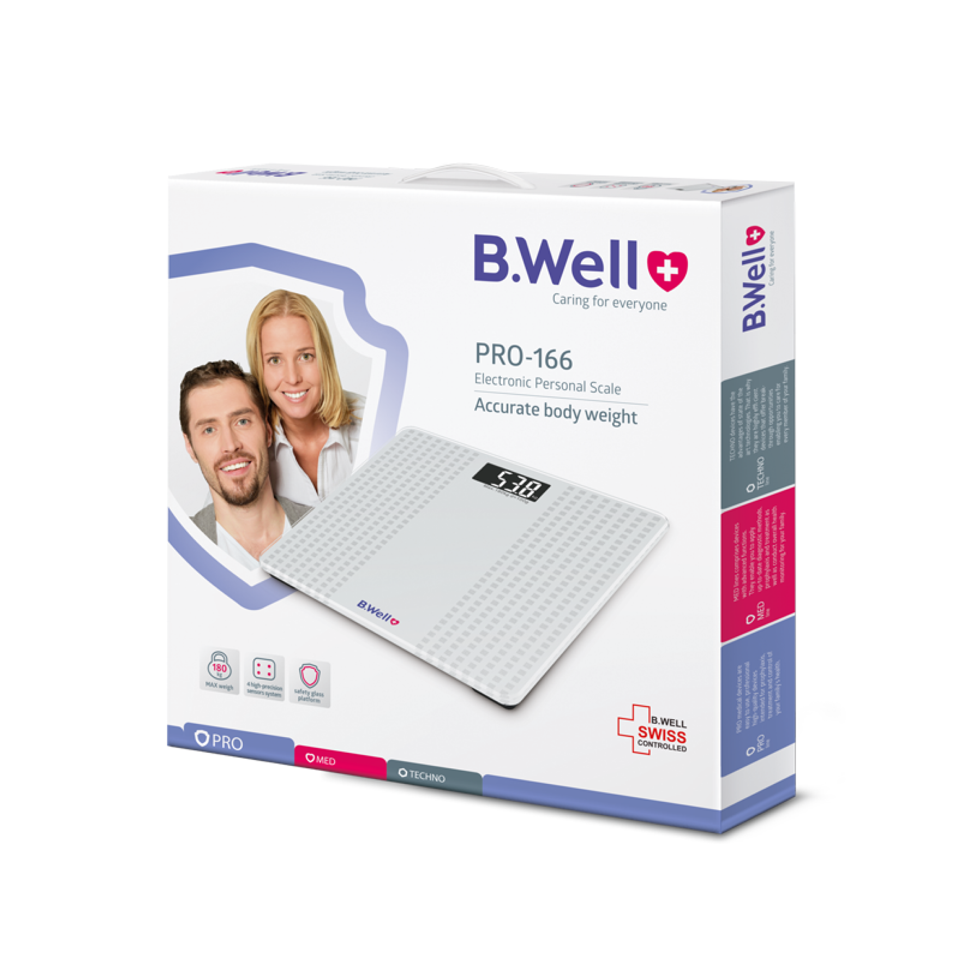 The PRO-166 electronic scale is simple and easy to use. They will help to quickly and accurately control body weight. The white-backlit LCD ensures ultra-clear results no matter the lighting in the room.