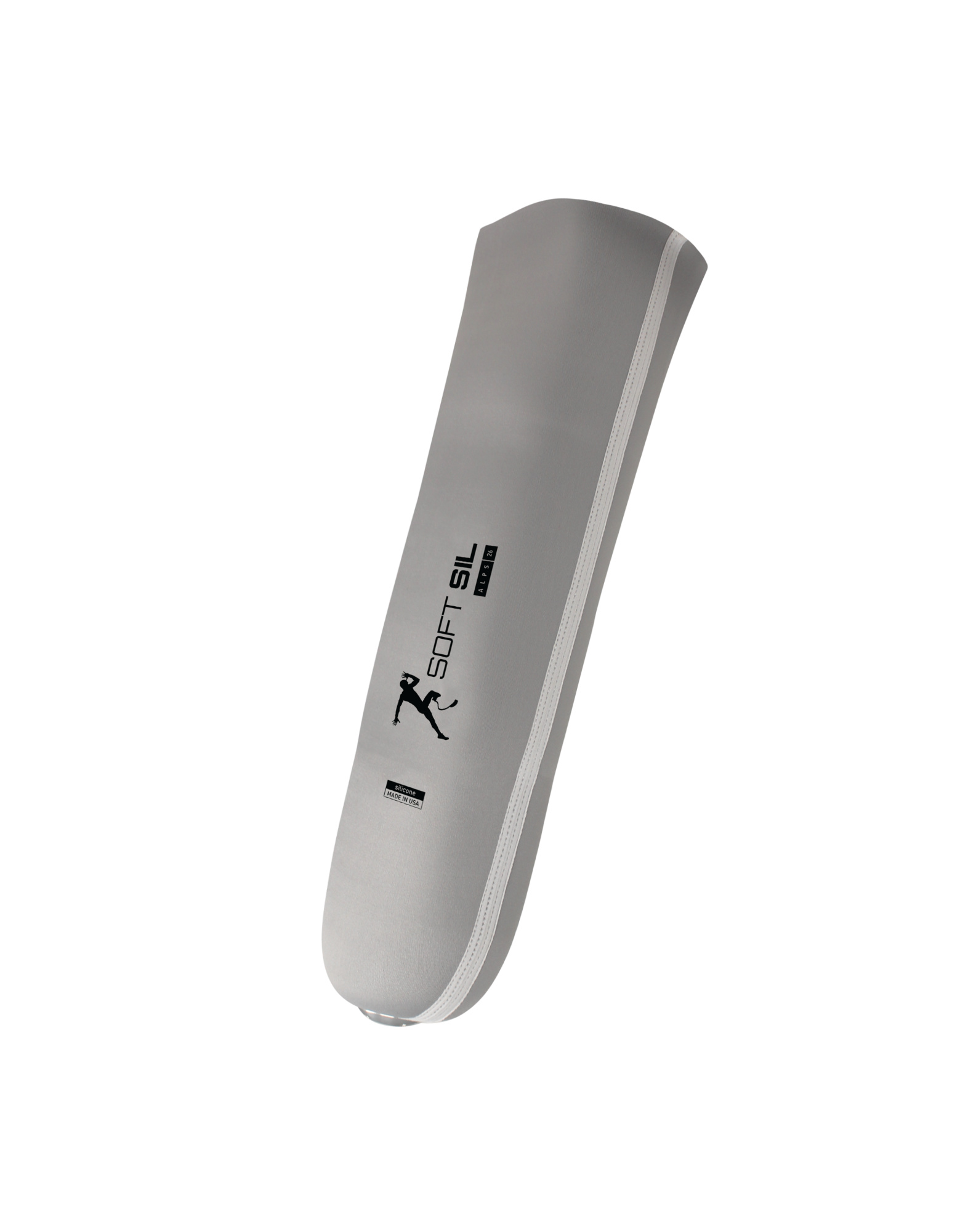 SoftSil is made of OptiSil, a white hypoallergenic silicone developed by Alps® . The premium grey fabric has low vertical elasticity, which helps to minimise the effect of vibration. The locking version has a new distal end fastening and an innovative U-shaped matrix for additional stability, while does not restrict movement. In addition, SoftSil is lightweight and promotes natural thermoregulation of the skin.