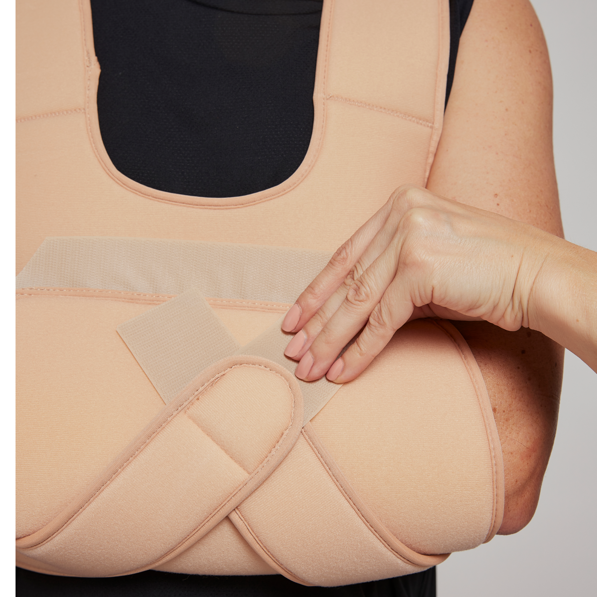 The orthosis is made of multilayer breathable material. The material is quite thin, it provides additional comfort in use. It is a wide part to support the forearm of 2 straps that cross on the back and a wide fixation tape for fixing the shoulder to the body with a width of 15 cm. Micro-Velcro fasteners greatly facilitate the use of the orthosis. Easy to put on and take off.