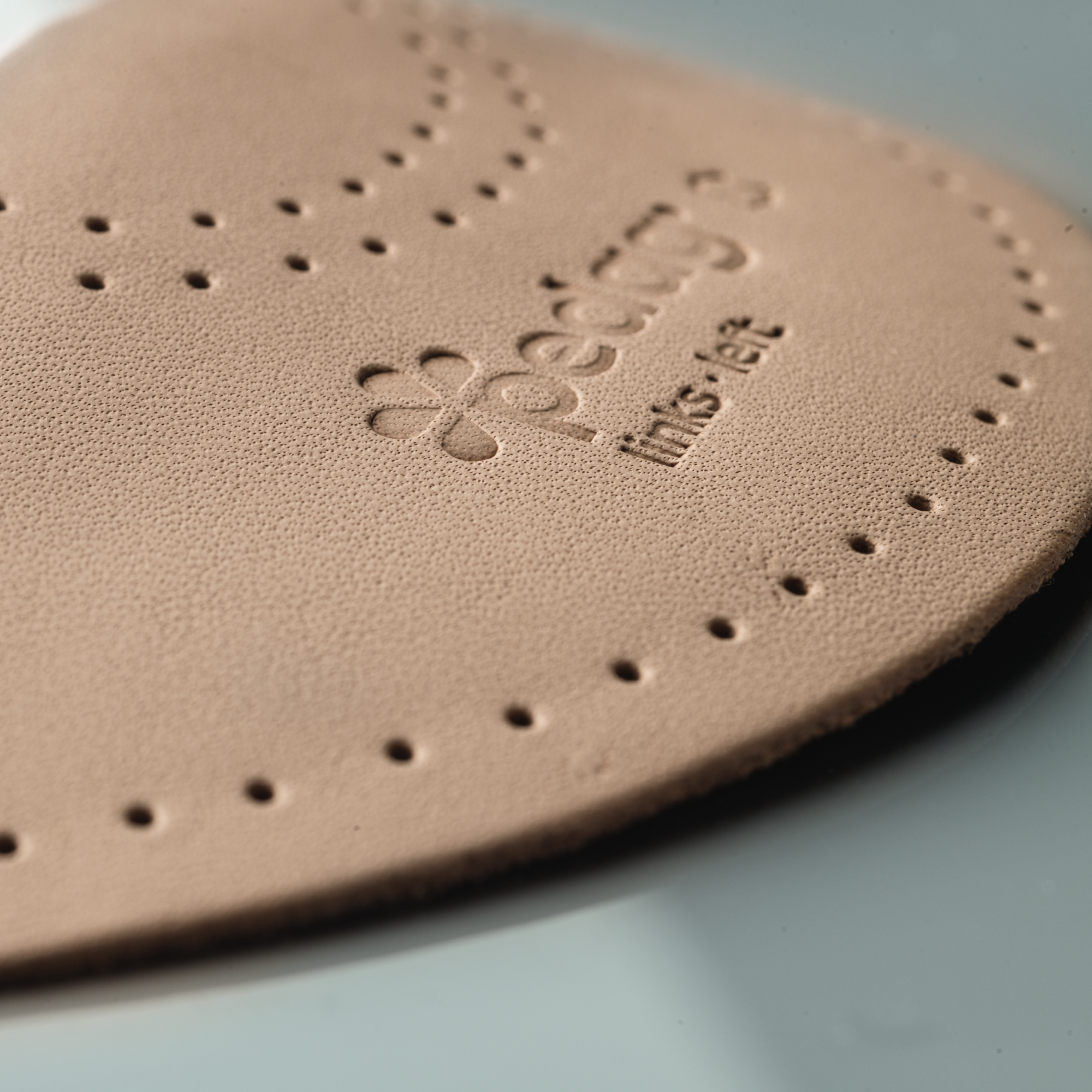 The frame of the insert is made of latex, which acts as a shock absorber. Natural leather covering. Adhesive fixative.