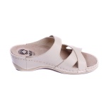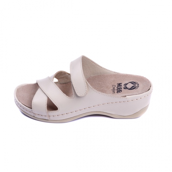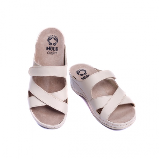 Anatomically molded to fit the shape of the foot. High sole with anti-slip effect, made of polyurethane. The top of footwear is made of natural high-quality leather. The orthopedic suede insole supports the arches of the foot in the correct position, perfectly absorbs excess moisture. The footwear is equipped with depreciation system – anti-shock. This model combines modern design and maximum comfort.