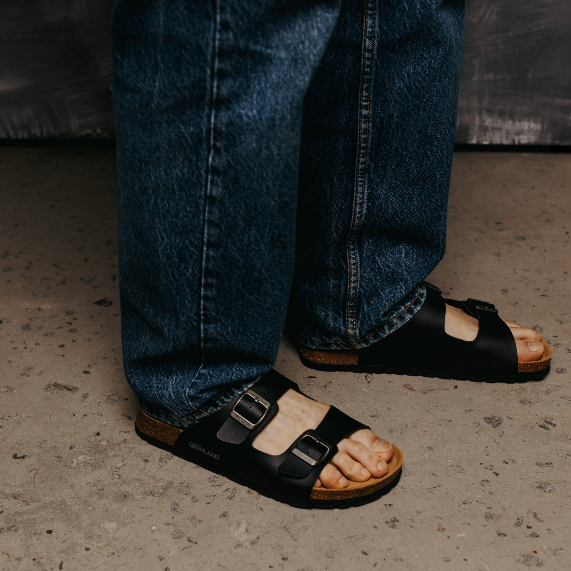 - The base of the shoe is made of natural cork, it stabilizes the foot and has a bed for fixing the heel;
