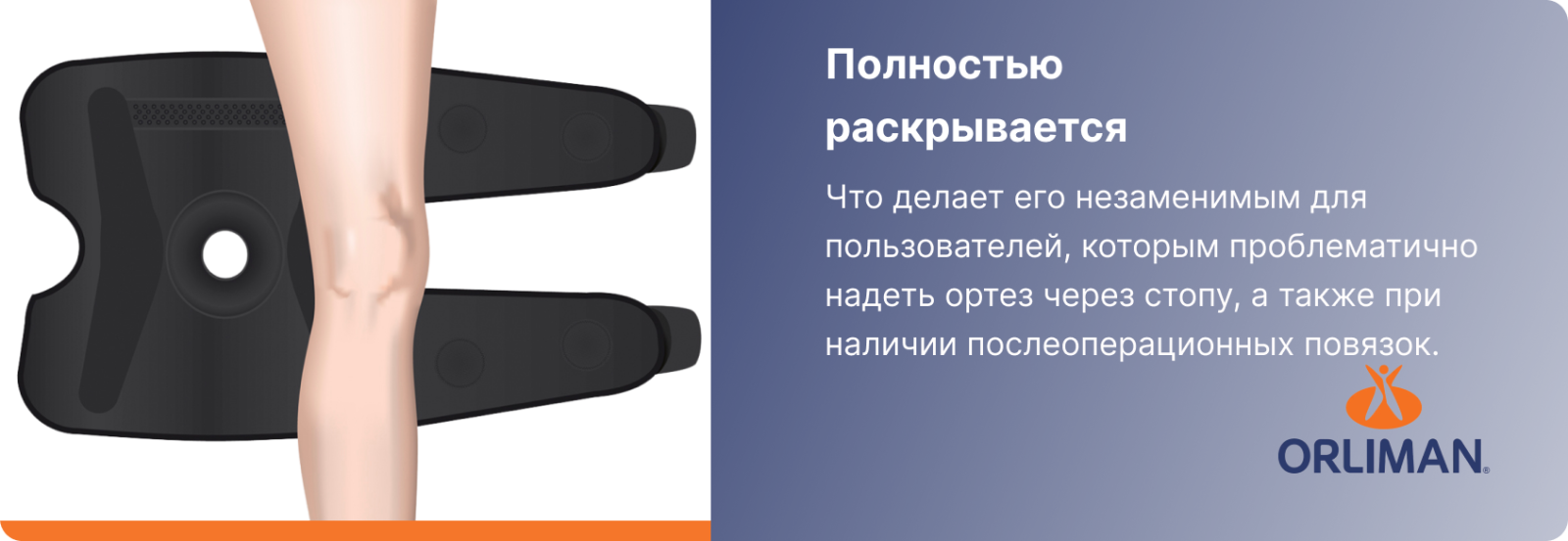 3-Tex разъемный наколенник с боковыми вставками и полицентрическим шарниром Orliman 7120