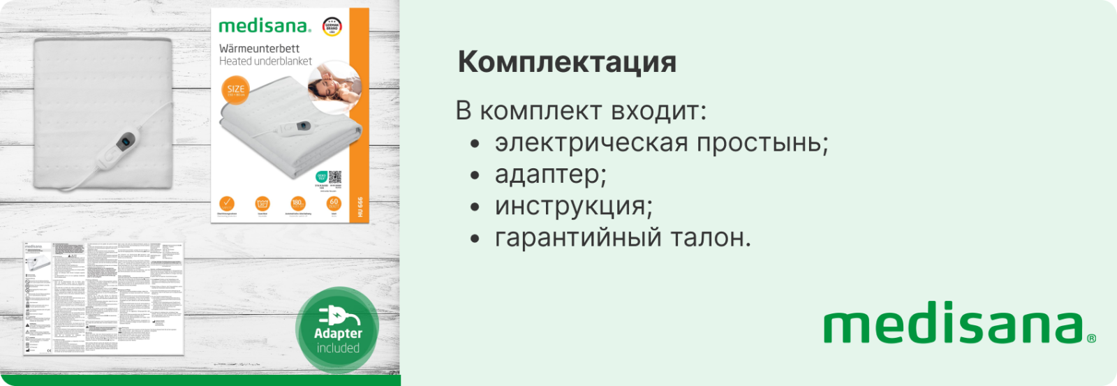 Электропростынь от Medisana обеспечит комфортный сон в холодное время года и равномерно прогреет кровать перед сном. Благодаря быстрому нагреванию электропростынь - безопасный и быстрый способ согреться, который подходит для людей с чувствительной кожей или проблемами кровообращения.