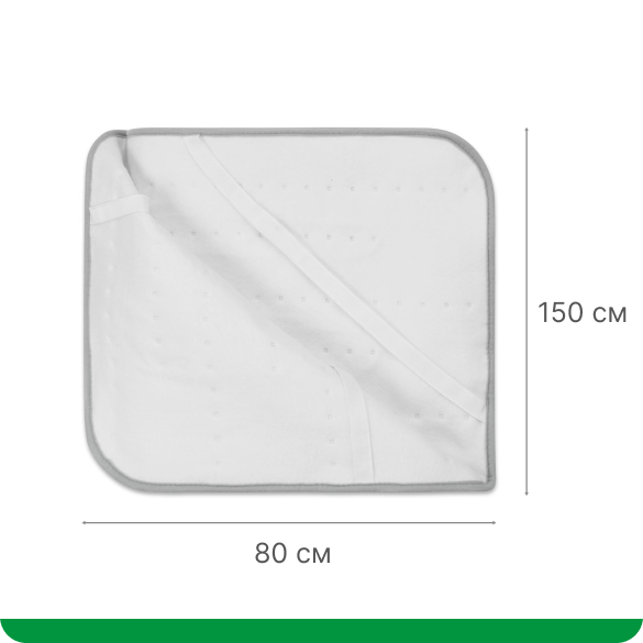 Простынь легко размещается на матрасах шириной от 90 до 100 см, полностью покрывая поверхность кровати и обеспечивая равномерное распределение тепла. Легкий вес – всего 1 кг, что делает его удобным для транспортировки.