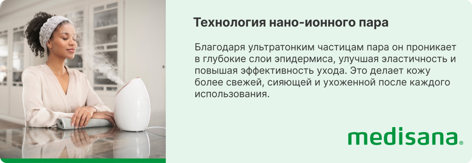 Теплый наноионный пар эффективно открывает поры и помогает вывести загрязнения, кожный жир и токсины. Это уменьшает риск появления черных точек, акне и воспалений. Регулярное использование способствует свежему и здоровому виду кожи.