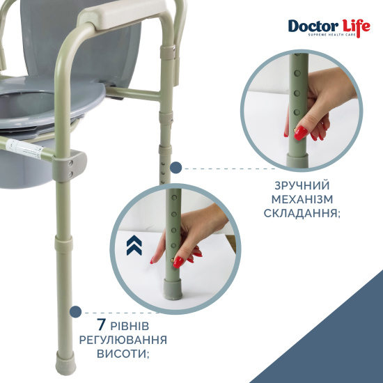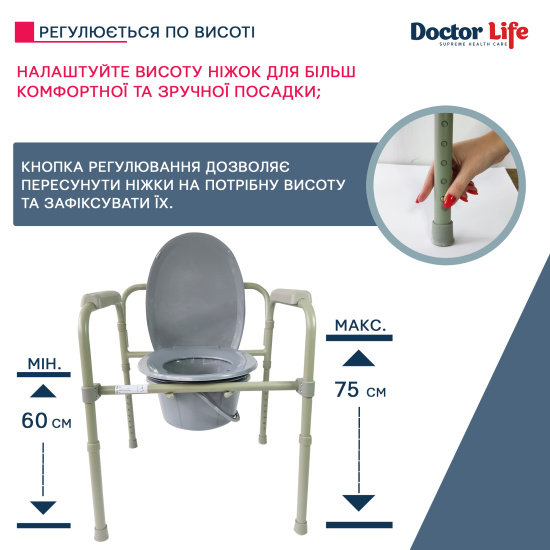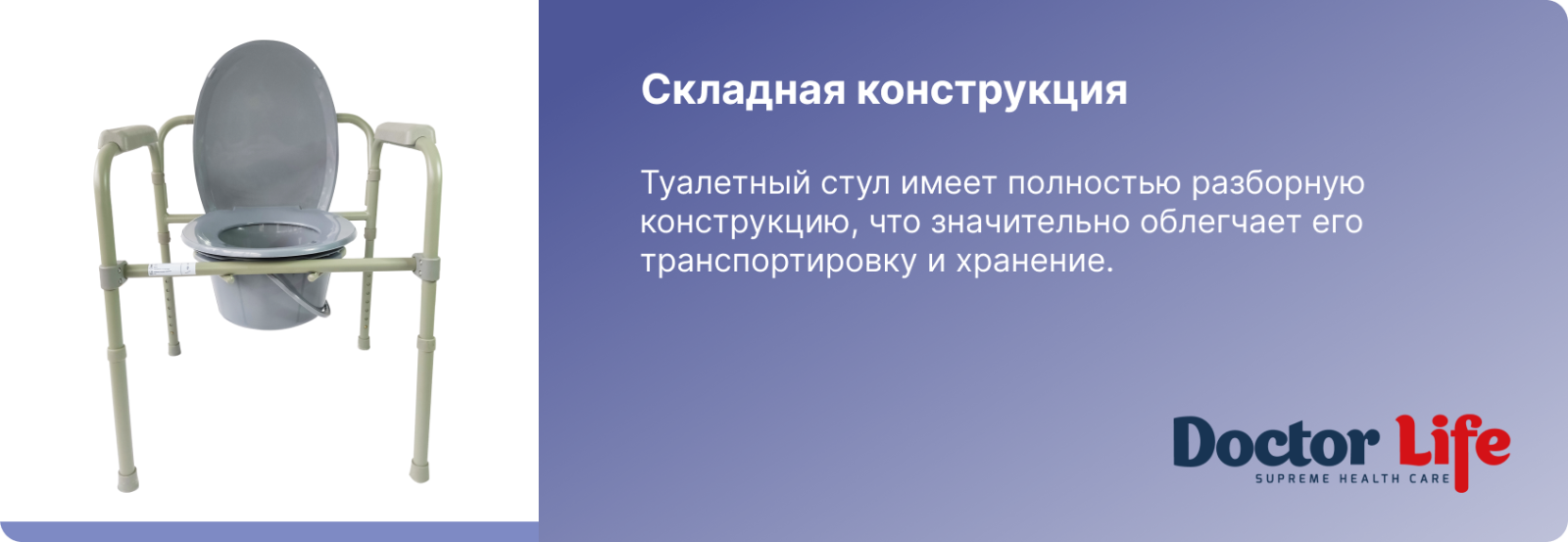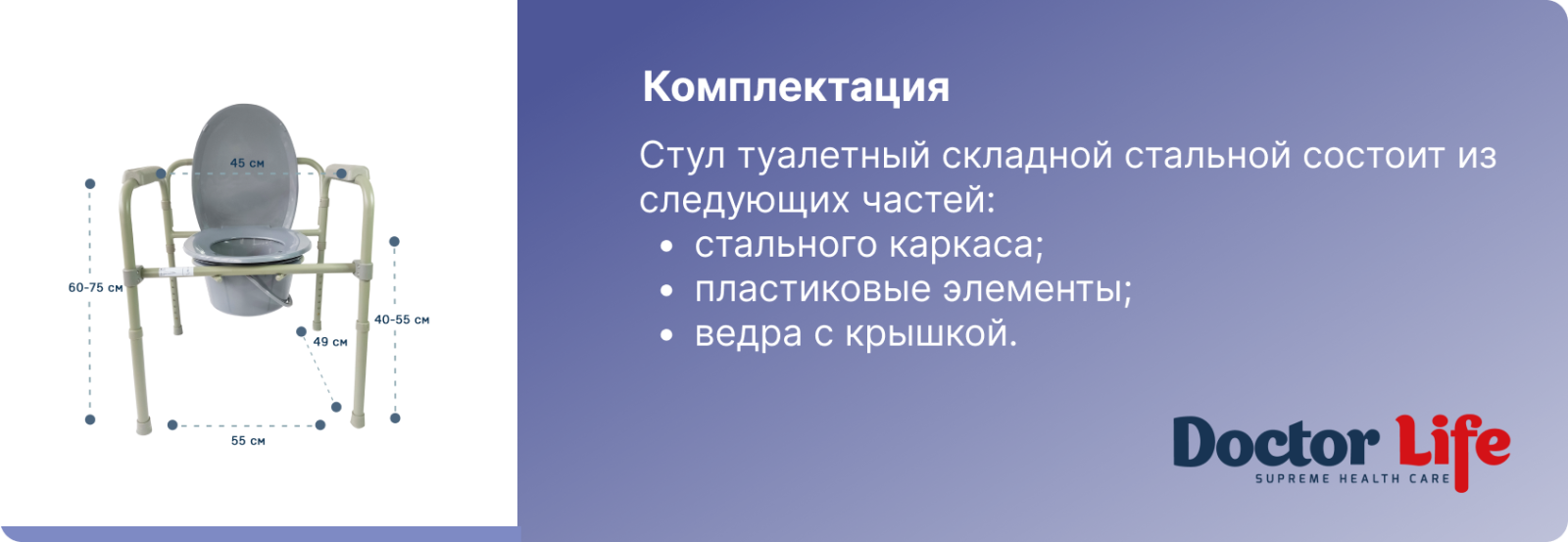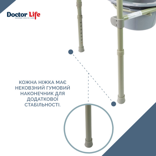 Туалетный стул Doctor Life придаст удобства, как пользователю так и лицу, которое за ним ухаживает. Стул имеет стойкую конструкцию со съемной крышкой и ведро. Материал изготовления отличается высокой стойкостью к химическим реагентам и дезинфицирующим средствам.