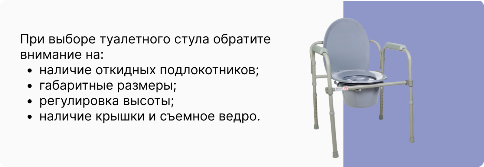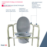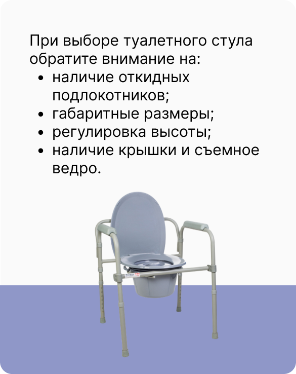 Стул-туалет предназначен для санитарно-гигиенических процедур при уходе за ослабленными пользователями. Для удобства использования и санитарной очистки стул имеет стойкую конструкцию с крышкой и ведром. Складной механизм позволяет сложить стул до компактных размеров. Для дополнительной безопасности пользователя стул имеет боковые подлокотники и спинку.