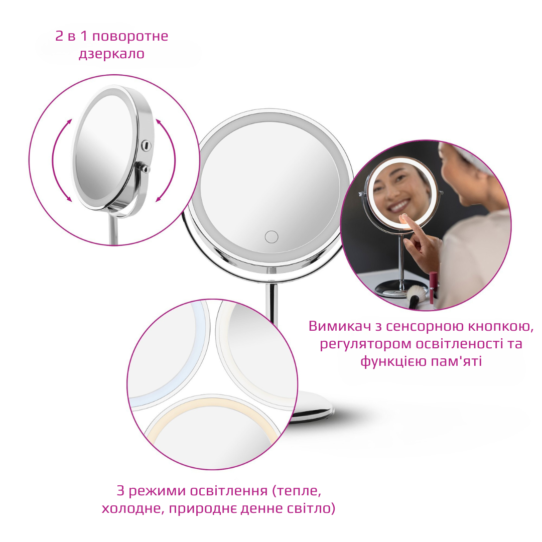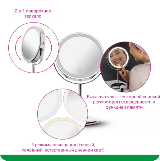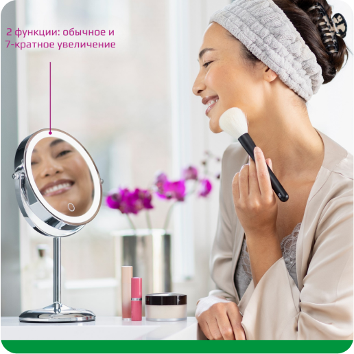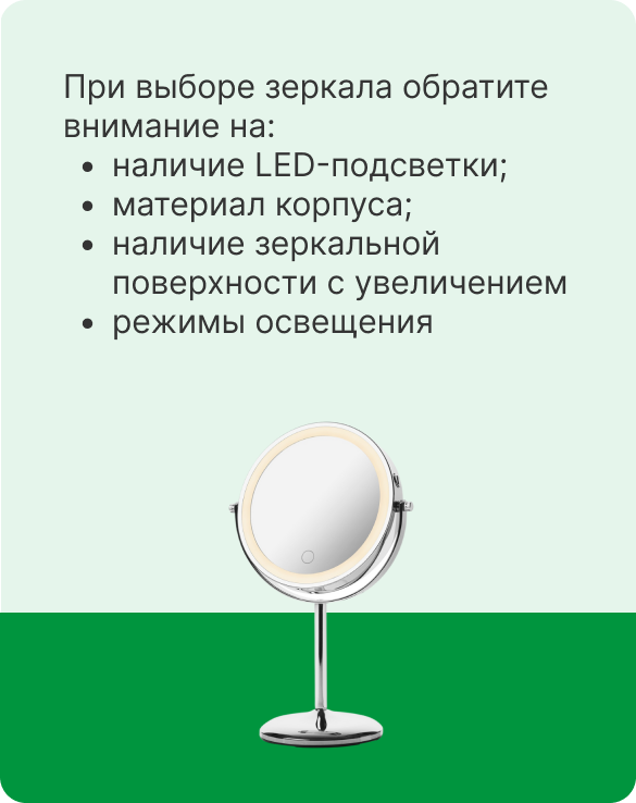 Косметическое зеркало с LED подсветкой помогает создать оптимальное освещение для нанесения макияжа и ухода за кожей, ведь правильное освещение позволяет видеть все детали и достигать идеального результата.