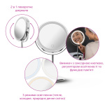 Косметическое зеркало Medisana CM 844 – это стильный и практичный аксессуар, который поможет в выполнении ежедневных бюджетов-процедур. Оно имеет две зеркальные поверхности – одна обеспечивает натуральное отражение, а другая увеличивает в 7 раз, что идеально подходит для детального макияжа, ухода за бровями или нанесения ухода. Подсветку можно регулировать по яркости и выбирать между холодным, теплым или естественным светом, обеспечивая оптимальное освещение для любых условий.